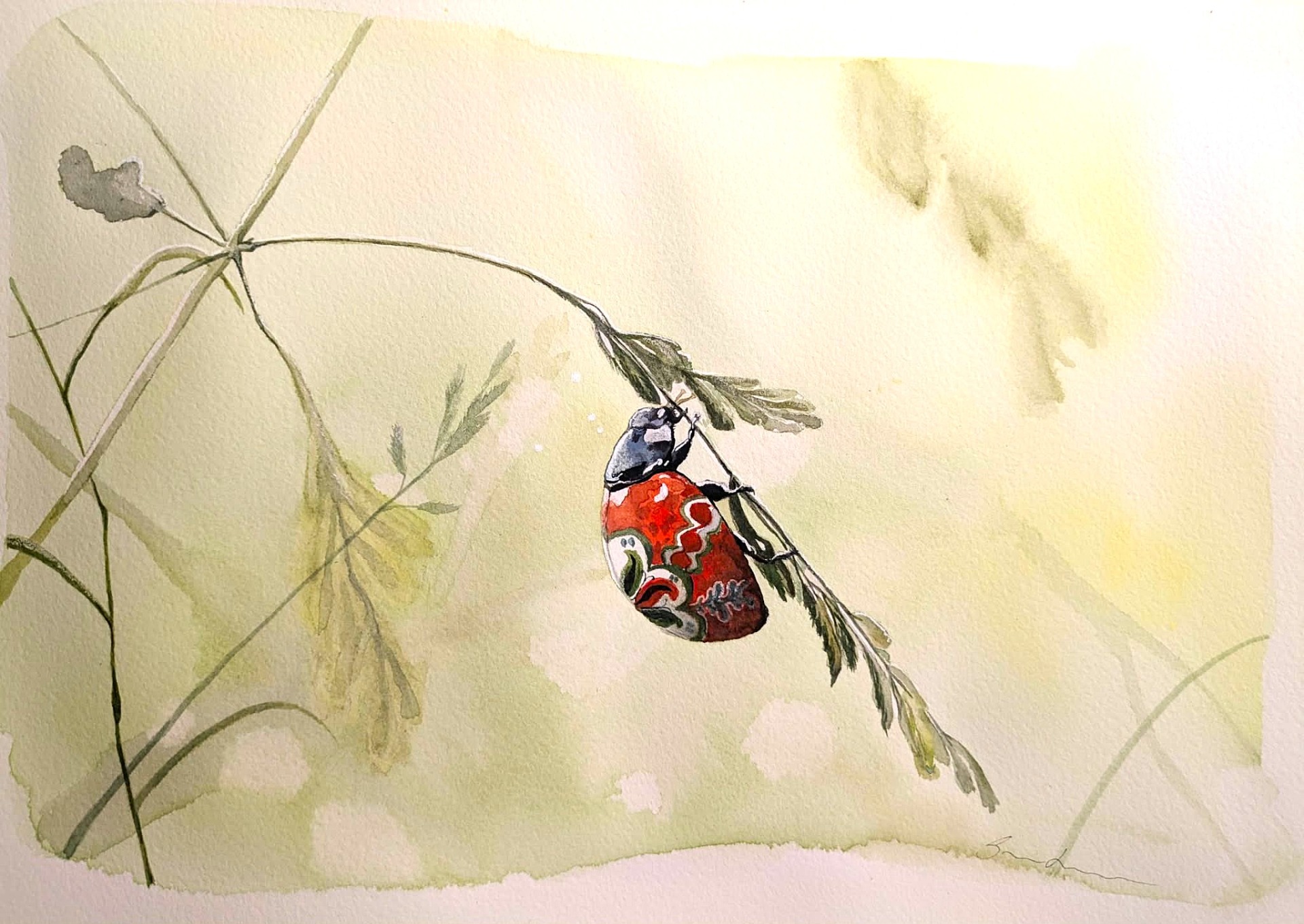 Tavlorna präglas även av en stor kärlek till naturen och materialet varierar mellan olika tekniker, men främst acryl och akvarell.