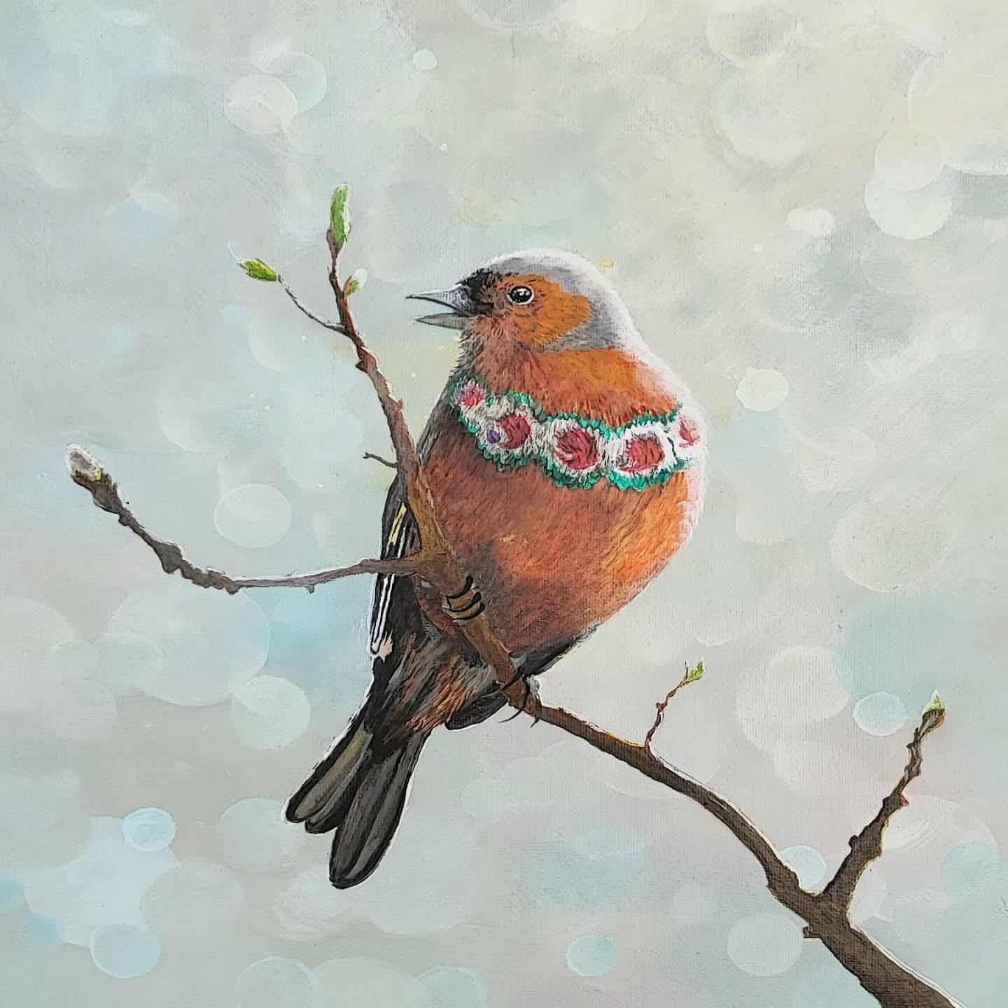 Print på Akryltavlan "Dala-Bofink" i måtten 50 X 50 cm. Utskriven på Hahnemühle Studio Lustre (250 gr.)