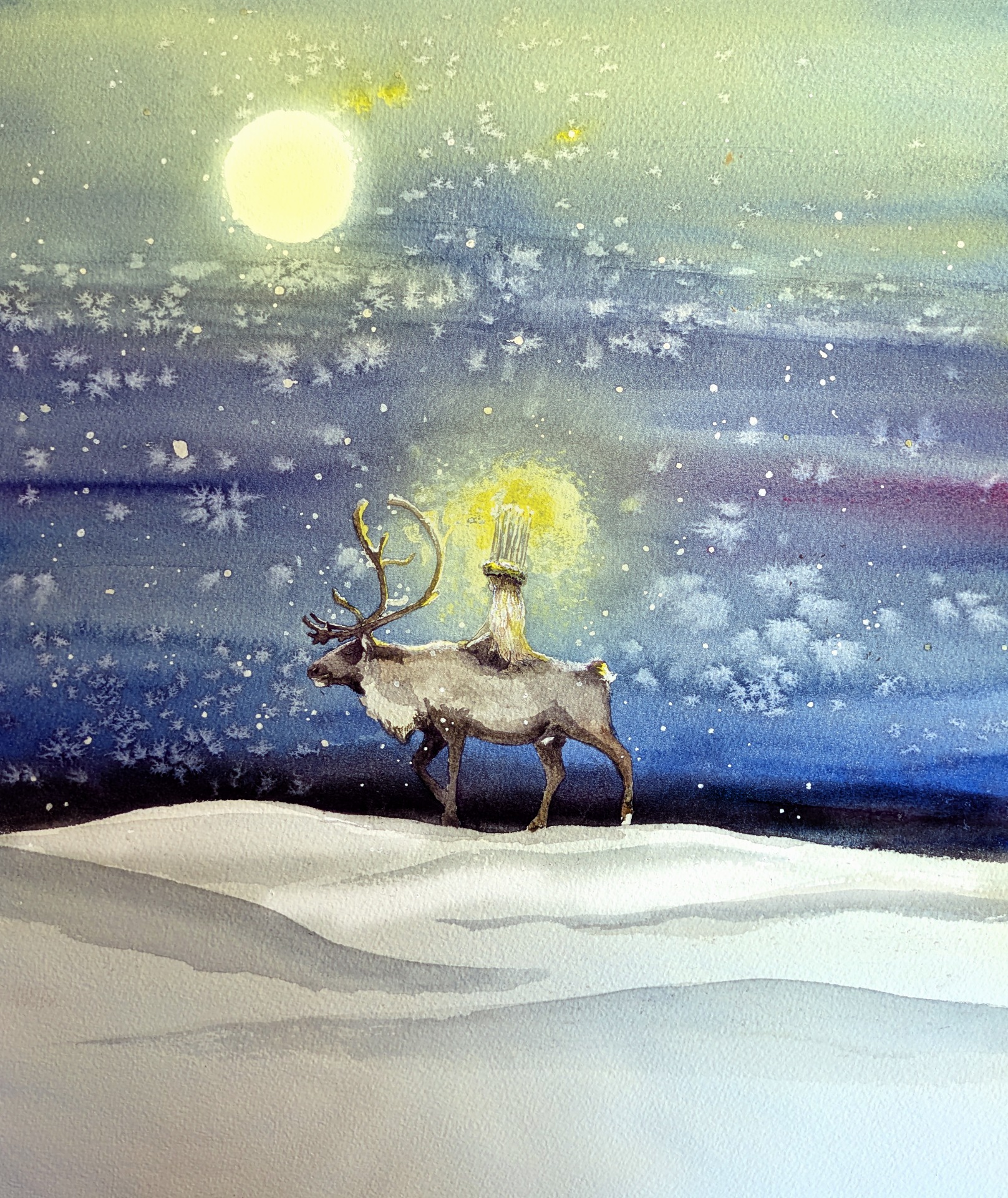Vackert julkort av akvarellmålningen "Tundrans Lucia".
